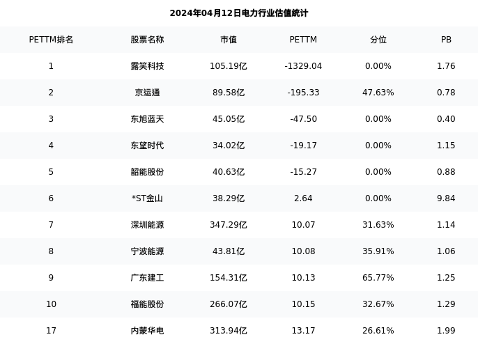 从估值角度看:内蒙华电最新市盈率PETTM为13.17,在行业内排名12/98,处于26.61分位。