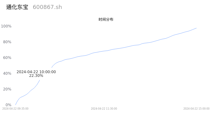 600867通化东宝2024年04月22日成交32.87万手,成交金额3.37亿元,相较昨日放量3.44万手,换手率1.65%,成交清淡。