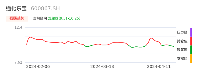 我们来看一下该股的九方特色指标强弱趋势的情况:通化东宝近日从持仓区下穿到观望区,股价出现持续性调整行情。短期已经转为空头行情,且下跌动能仍未衰竭。建议继续谨慎观望。