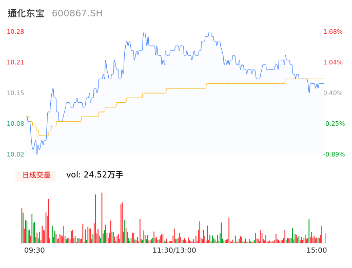 04月18日,通化东宝收报10.15,股价涨幅0.40%,成交金额2.51亿元,换手率1.24%。