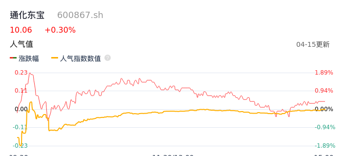 04月15日,通化东宝收报10.06,股价涨幅0.30%,成交金额2.80亿元,换手率1.39%。