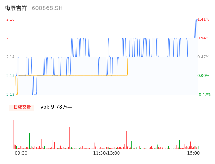 04月24日,梅雁吉祥收报2.15,股价涨幅0.94%,成交金额2092.91万元,换手率0.52%。