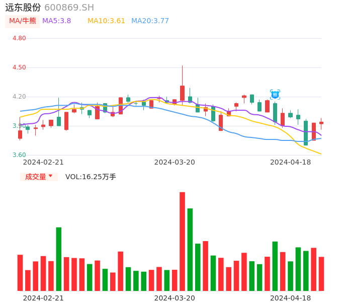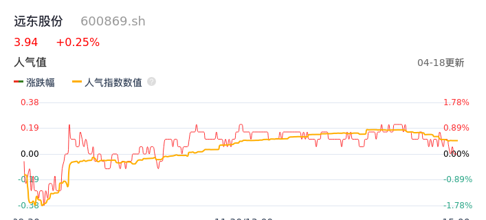 04月18日,远东股份收报3.94,股价涨幅0.25%,成交金额6391.21万元,换手率0.73%。