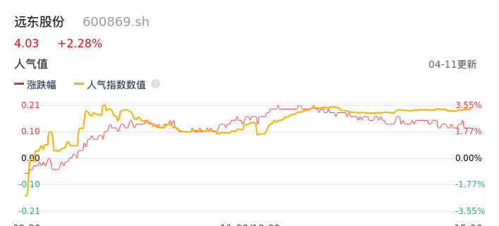 04月11日,远东股份收报4.03,股价涨幅2.28%,成交金额7441.06万元,换手率0.84%。