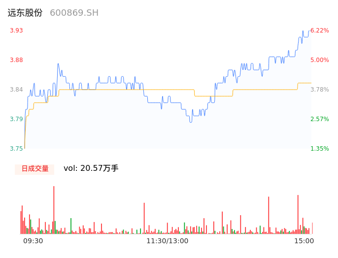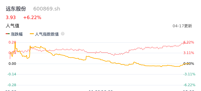 04月17日,远东股份收报3.93,股价涨幅6.22%,成交金额7920.06万元,换手率0.93%。