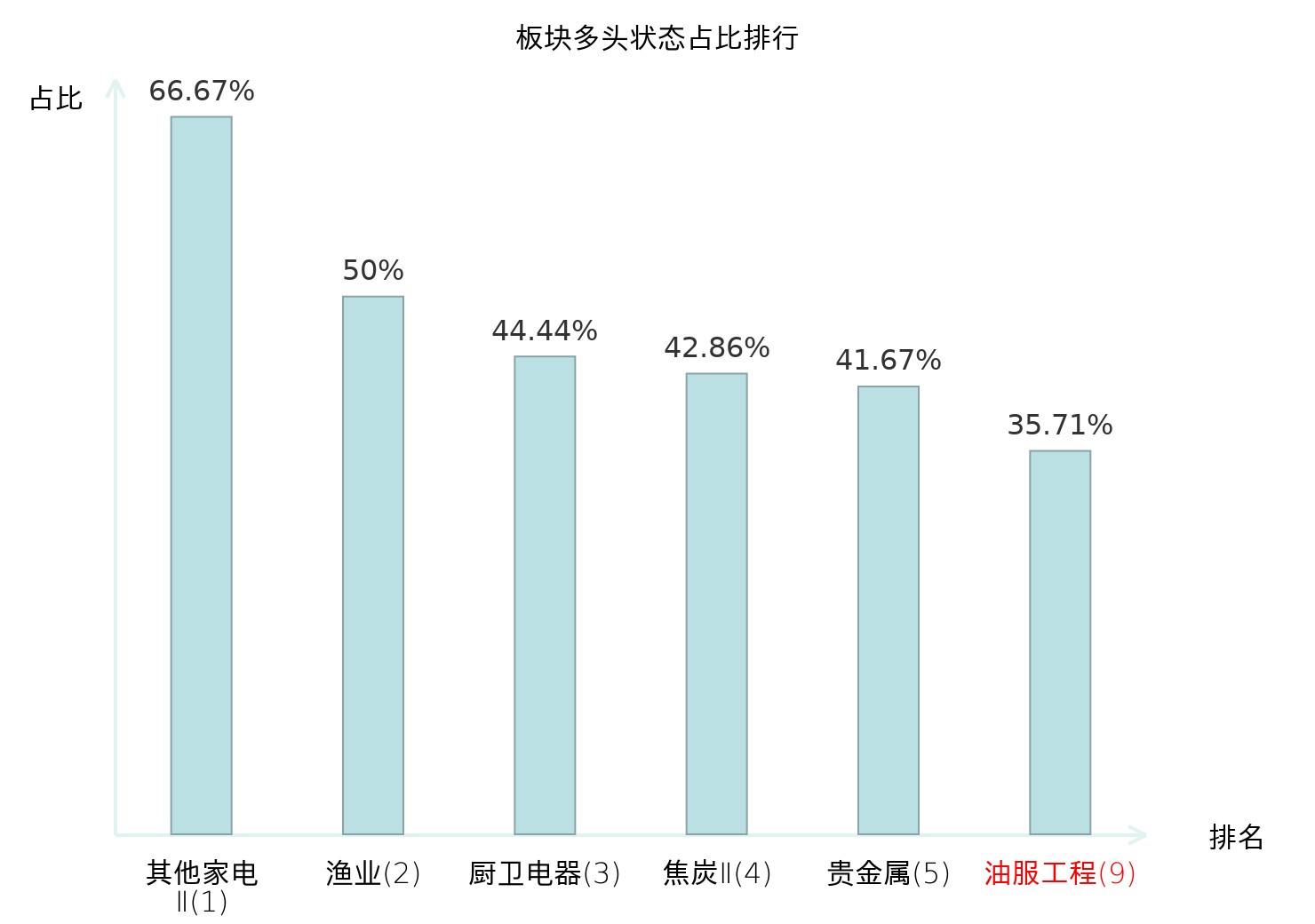 全市场所有行业板块中主力多头状态占比排名中,其他家电Ⅱ板块位居第一。乘用车板块名次提升最快,较昨日上升82位。