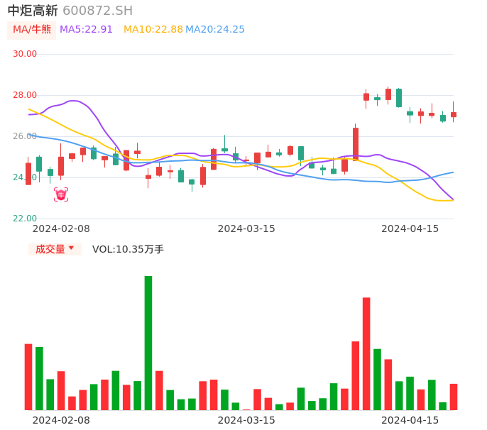 04月15日,中炬高新收报27.16,股价涨幅1.61%,成交金额2.81亿元,换手率1.32%。