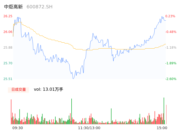 04月19日,中炬高新收报26.20,股价涨幅0.04%,成交金额3.37亿元,换手率1.66%。