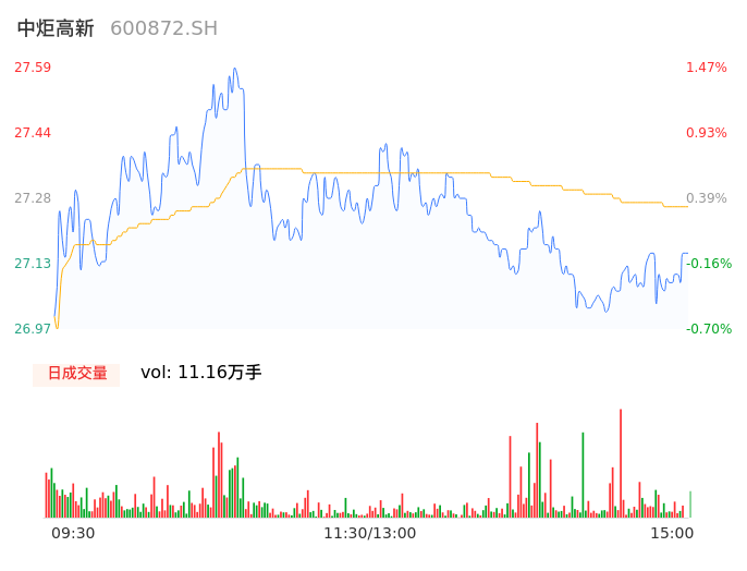 04月11日,中炬高新收报27.12,股价涨幅-0.26%,成交金额3.04亿元,换手率1.42%。