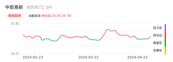 我们来看一下该股的九方特色指标强弱趋势的情况:中炬高新近日从观望区上穿到持仓区。股价短期站稳多头区域,上升动能仍较为充足,可积极关注。后续重点关注上方压力位:28.78元是否能突破上攻。