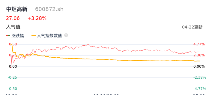 04月22日,中炬高新收报27.06,股价涨幅3.28%,成交金额3.59亿元,换手率1.69%。