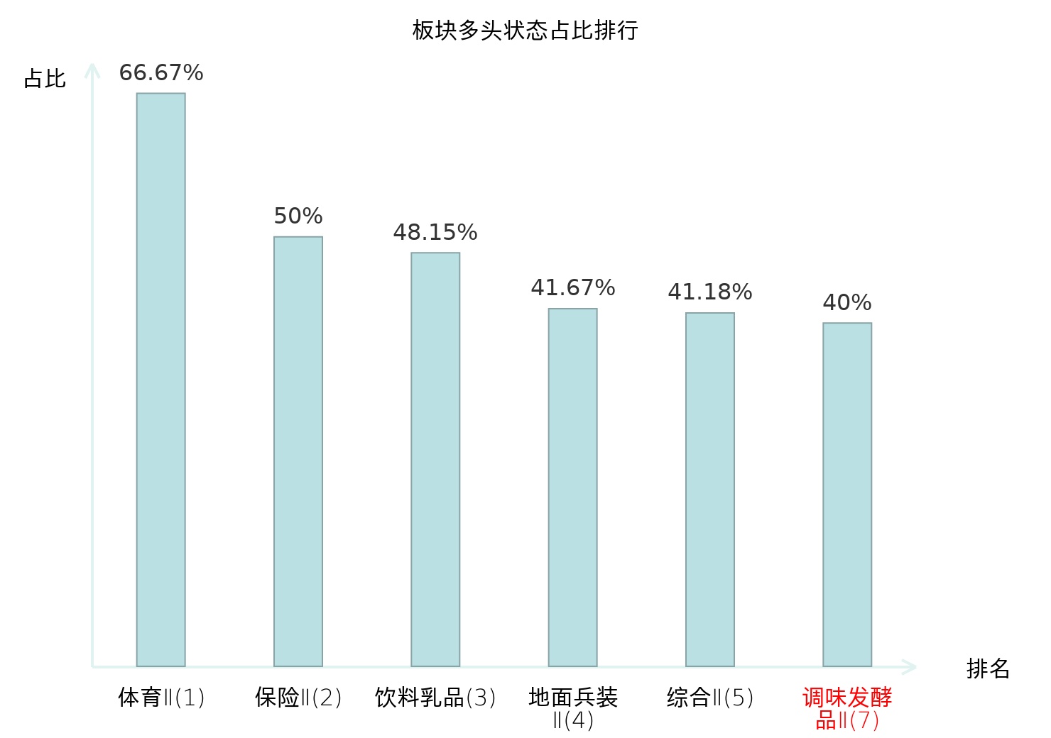 全市场所有行业板块中主力多头状态占比排名中,体育Ⅱ板块位居第一。种植业板块名次提升最快,较昨日上升70位。