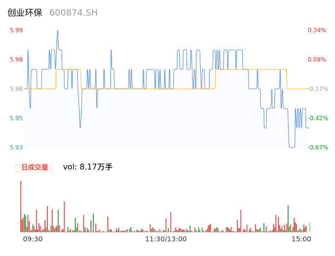 04月12日,创业环保收报5.93,股价涨幅-0.67%,成交金额4871.26万元,换手率0.66%。