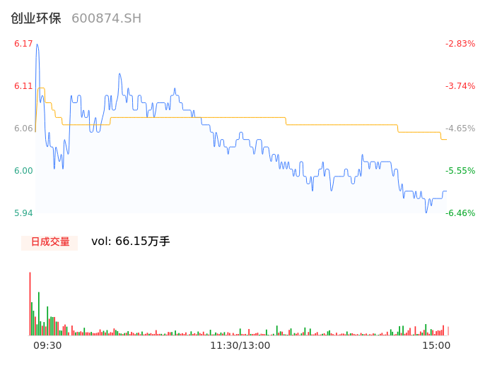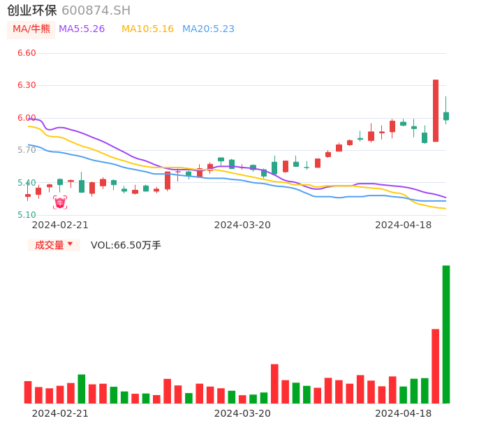 04月18日,创业环保收报5.98,股价涨幅-5.83%,成交金额4.02亿元,换手率5.40%。