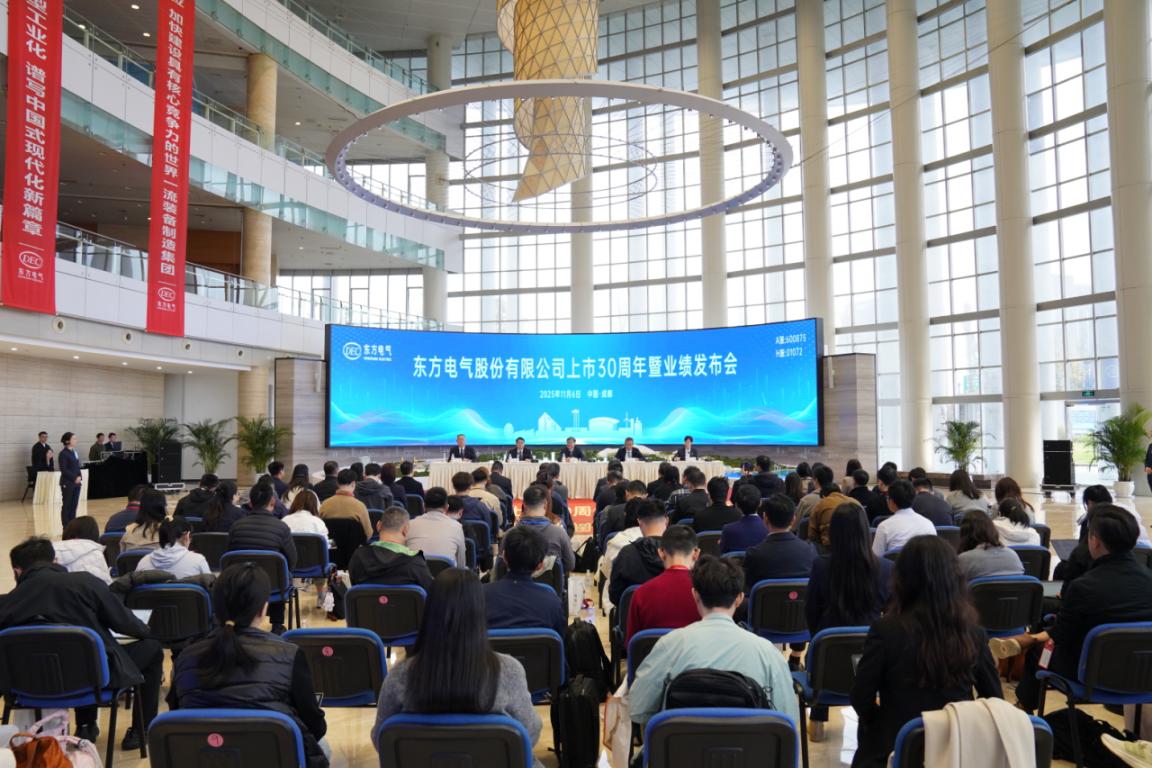上证报中国证券网讯11月6日,东方电气股份有限公司上市30周年暨业绩发布会在成都举办。本次活动以东方电气上市30周年为契机,旨在进一步加强与资本市场各方的沟通交流,全面展示公司经营成果与产业布局,增进投资者对公司战略方向、发展模式及价值创造能力的了解。