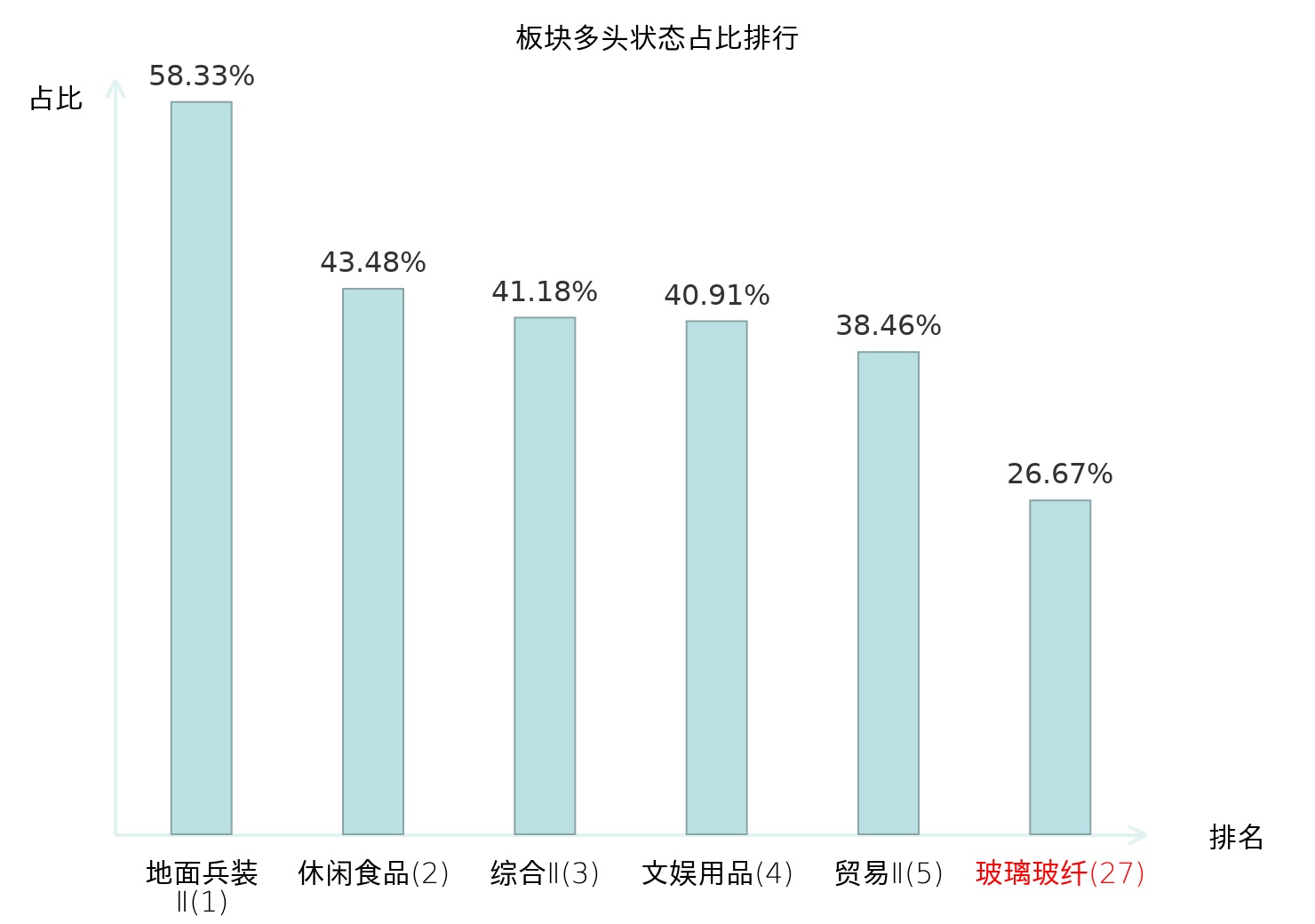 全市场所有行业板块中主力多头状态占比排名中,地面兵装Ⅱ板块位居第一。林业Ⅱ板块名次提升最快,较昨日上升90位。