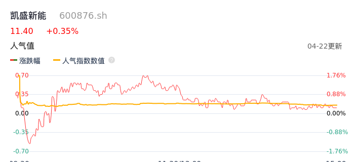 04月22日,凯盛新能收报11.40,股价涨幅0.35%,成交金额2345.83万元,换手率0.54%。