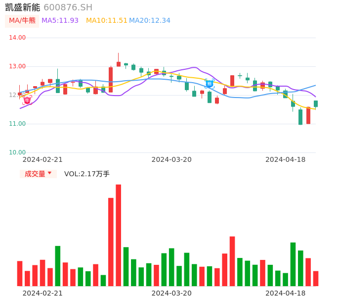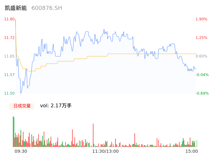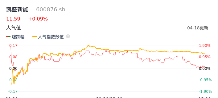 04月18日,凯盛新能收报11.59,股价涨幅0.09%,成交金额2530.95万元,换手率0.57%。
