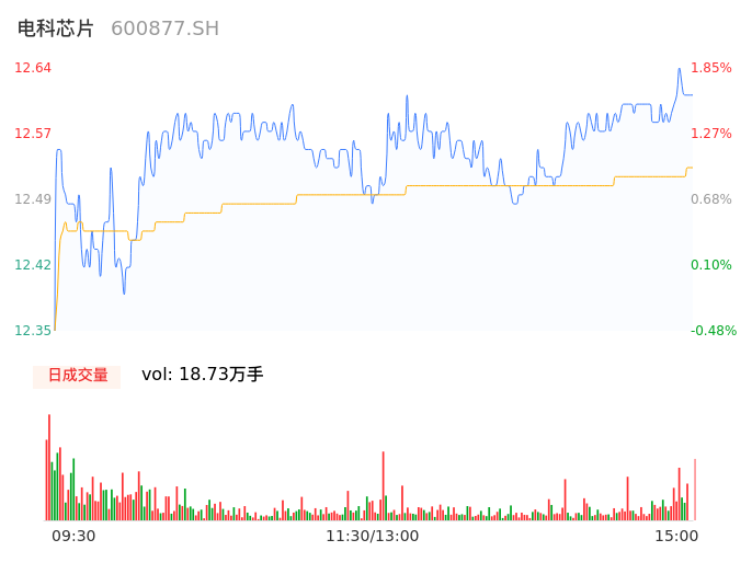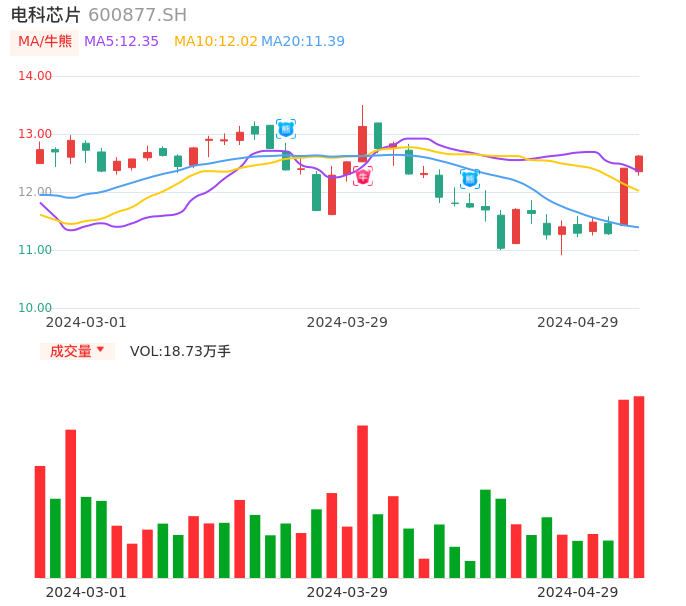 04月29日,电科芯片收报12.62,股价涨幅1.69%,成交金额2.35亿元,换手率2.03%。