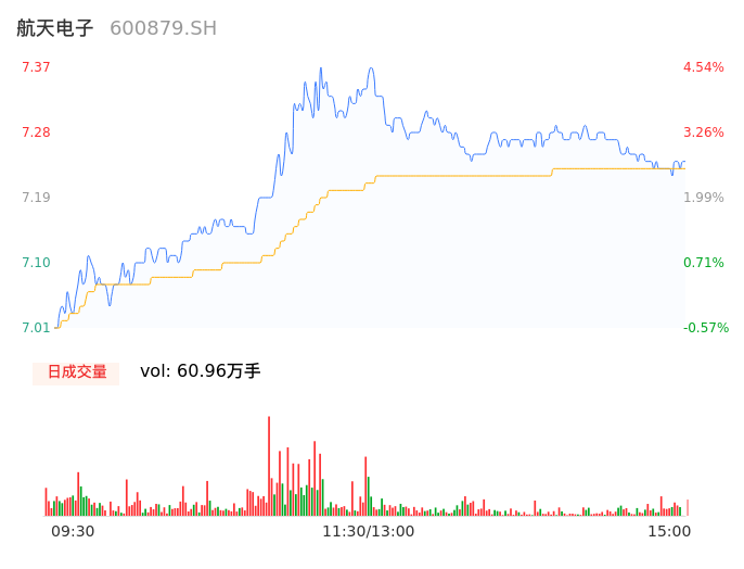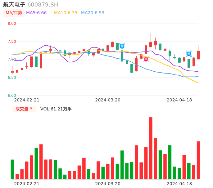 04月18日,航天电子收报7.24,股价涨幅2.70%,成交金额4.42亿元,换手率1.90%。