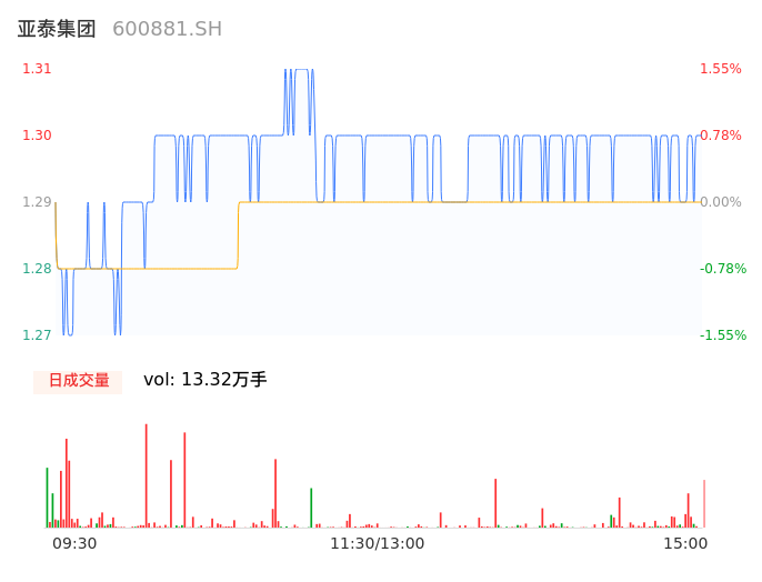04月25日,亚泰集团收报1.30,股价涨幅0.78%,成交金额1718.77万元,换手率0.41%。