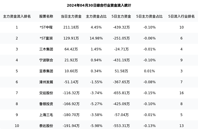 亚泰集团今日净流入10.60万元,主力占比0.34%,在行业内排名:5/19;5日净流入51.58万元,主力占比0.01%,在行业内排名:3/19。