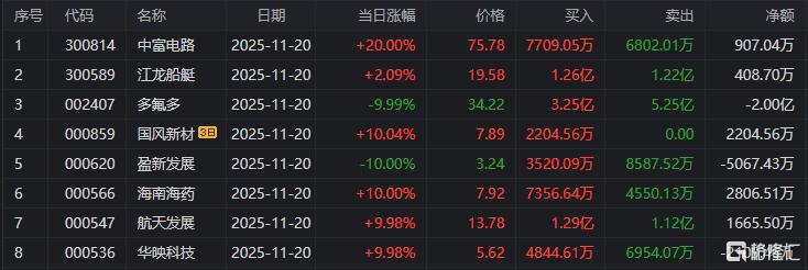成都系:净买入中富电路7032万元、海南海药6838万元、亚泰集团3078万元;净卖出航天发展9302万元、国联水产6166万元、中央商场3763万元
