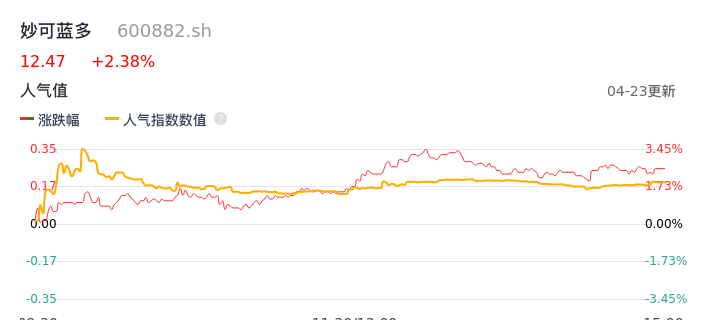 04月23日,妙可蓝多收报12.47,股价涨幅2.38%,成交金额5414.60万元,换手率0.85%。