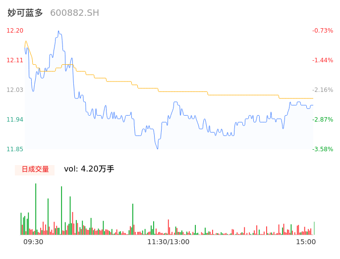 04月19日,妙可蓝多收报11.95,股价涨幅-2.77%,成交金额5039.88万元,换手率0.82%。