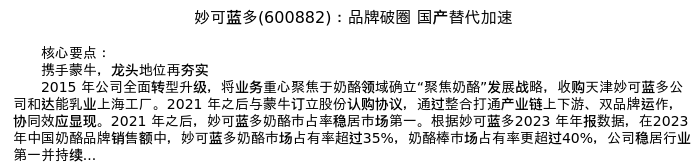 值得注意的是:2025年11月湘财证券的分析师,首次发布关于妙可蓝多的研究报告,标题为:妙可蓝多(600882):品牌破圈 国产替代加速。