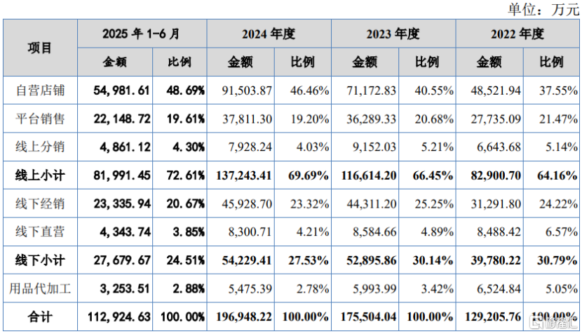 英氏控股采取线上线下相结合的销售模式,报告期内,其线上销售占比从64.16%提升至72.61%,线下销售占比有所下降。