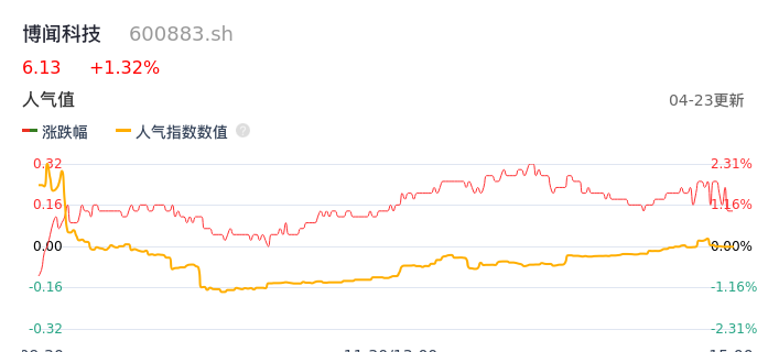04月23日,博闻科技收报6.13,股价涨幅1.32%,成交金额1663.81万元,换手率1.15%。