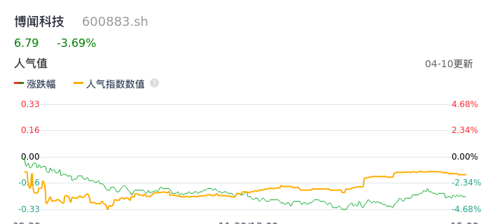 04月10日,博闻科技收报6.79,股价涨幅-3.69%,成交金额2500.12万元,换手率1.55%。