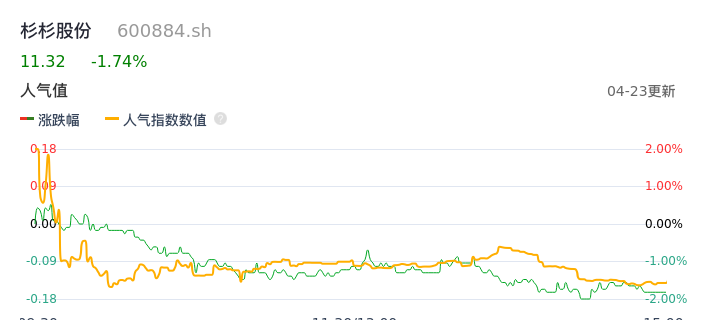 04月23日,杉杉股份收报11.32,股价涨幅-1.74%,成交金额1.04亿元,换手率0.52%。