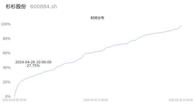 根据成交分布分析,该股票当天放量成交,成交清淡。时间上看,早盘前半小时成交量占据当天总成交量的27.75%;价格上看,成交呈现中间峰。成交分布分析主要研究股票成交的分布特性,不具有预测功能,请知悉。