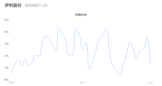 600887伊利股份2024年04月17日成交36.44万手,成交金额9.90亿元,相较昨日缩量8.41万手,换手率0.58%,成交清淡。