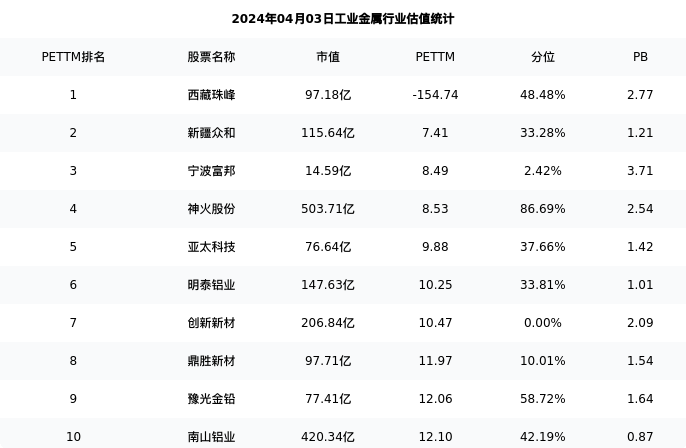 从估值角度看:新疆众和最新市盈率PETTM为7.41,在行业内排名1/59,处于33.28分位。