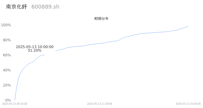600889南京化纤2025年05月13日成交43.05万手,成交金额7.80亿,相较昨日放量21.21万手,换手率11.75%,成交活跃。