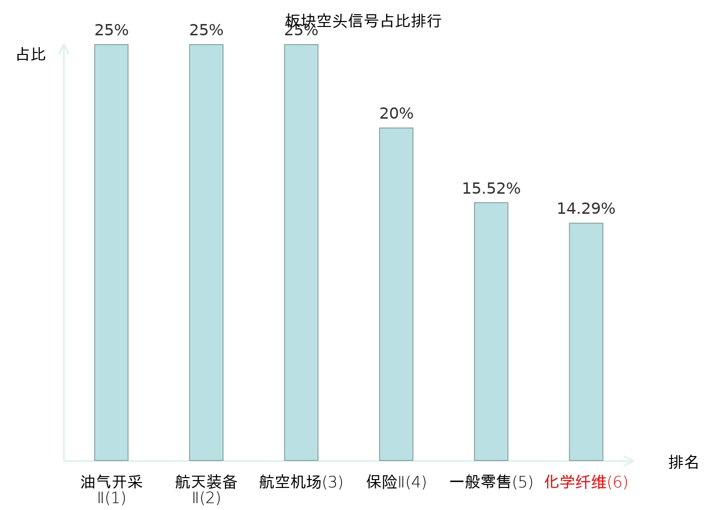全市场所有行业板块中主力空头信号占比排名中,油气开采Ⅱ板块位居第一。航空装备Ⅱ板块名次提升最快,较昨日上升121位。