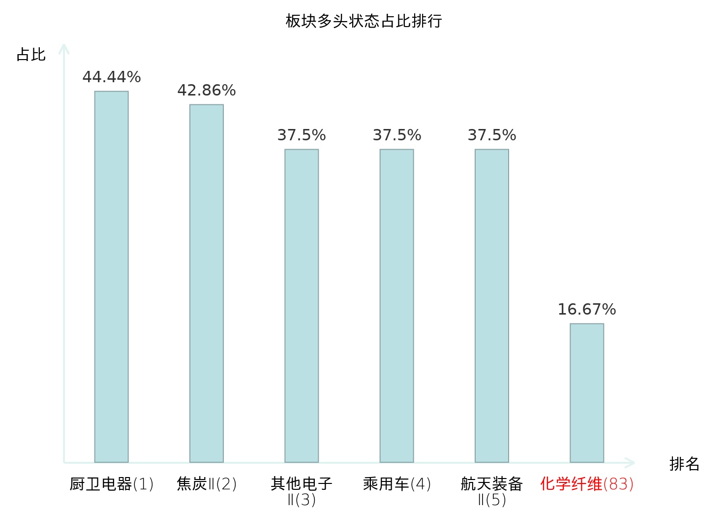 全市场所有行业板块中主力多头状态占比排名中,厨卫电器板块位居第一。元件板块名次提升最快,较昨日上升69位。