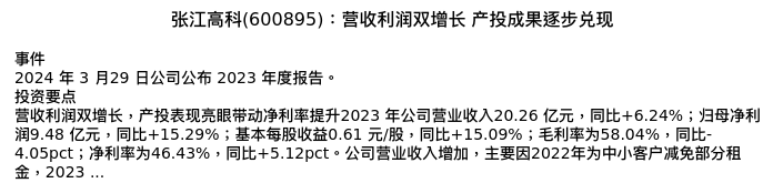 值得注意的是:2024年04月浙商证券的杨凡/吴贵伦分析师,首次发布关于张江高科的研究报告,标题为:张江高科(600895):营收利润双增长 产投成果逐步兑现。