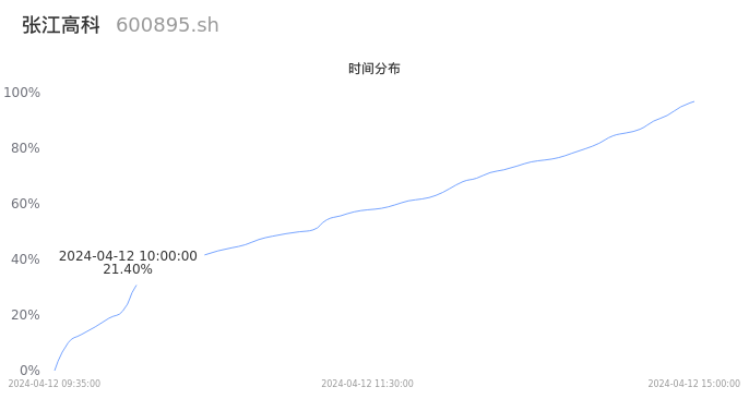 600895张江高科2024年04月12日成交21.13万手,成交金额3.91亿元,相较昨日放量7111手,换手率1.36%,成交清淡。