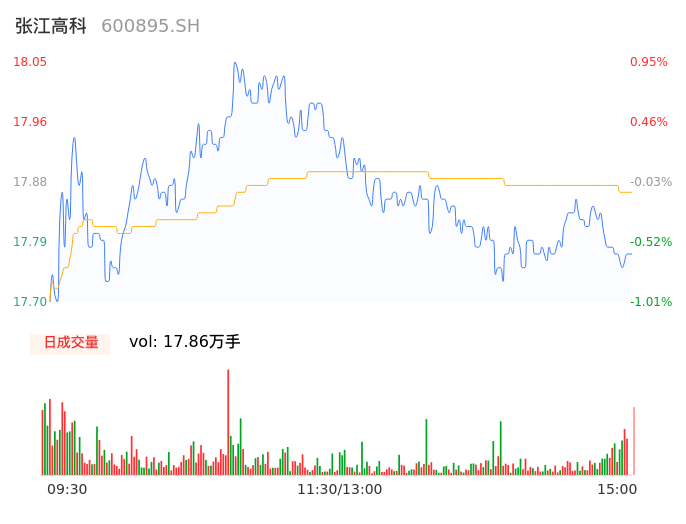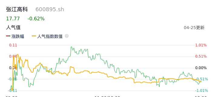 04月25日,张江高科收报17.77,股价涨幅-0.62%,成交金额3.19亿元,换手率1.15%。