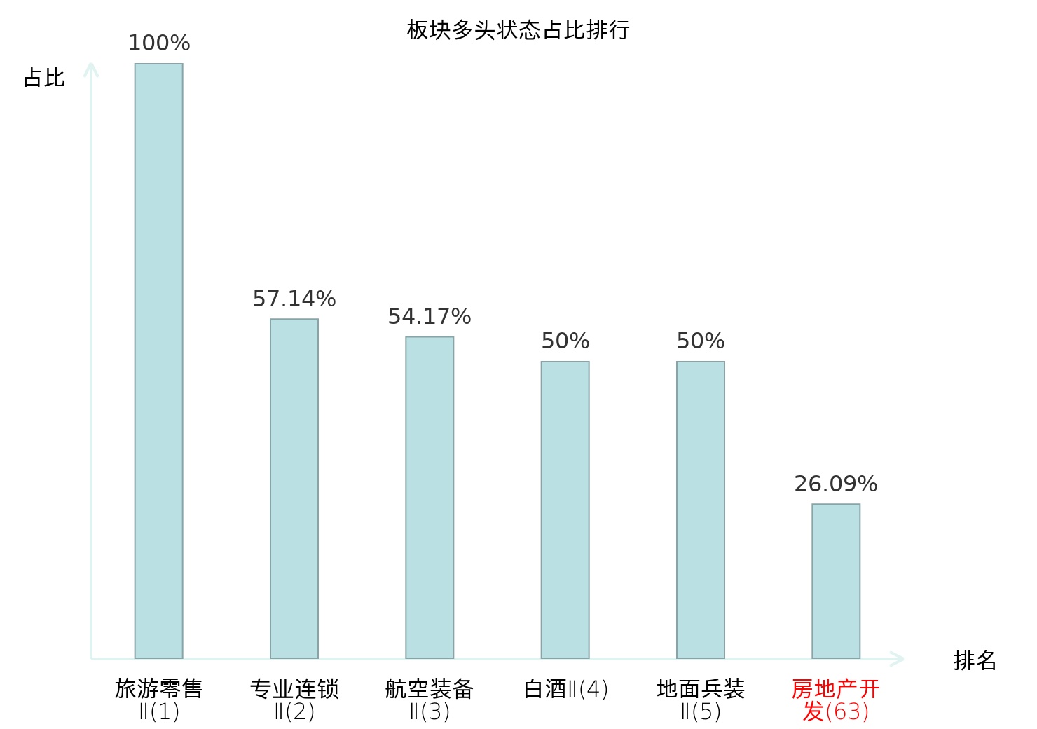 全市场所有行业板块中主力多头状态占比排名中,旅游零售Ⅱ板块位居第一。游戏Ⅱ板块名次提升最快,较昨日上升102位。