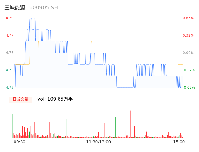 05月14日,三峡能源收报4.74,股价涨幅-0.42%,成交金额5.21亿元,换手率0.81%。