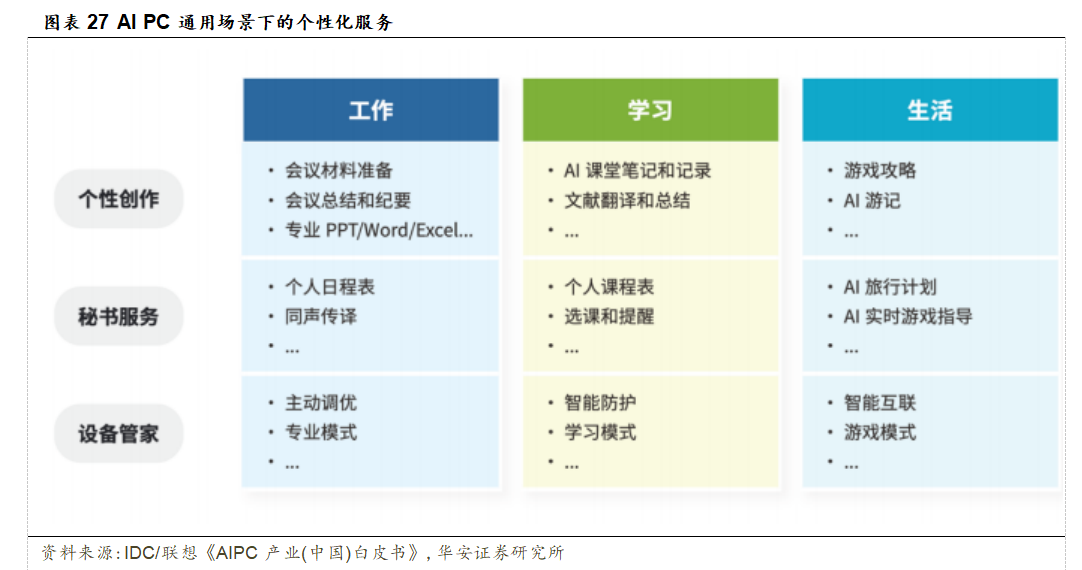 PC市场的增长来自消费与商用两部分市场的共同支撑。IDC认为,在个人消费市场,AIPC将缩短用户换机周期,加速换机潮的到来,同时改变PC市场的用户人群结构;中小企业将借助AIPC加速智能化转型,优化客户体验,提升运营效率;而大型企业的变化将体现于更长的时间跨度,AIPC将长期与大型企业智能化转型相结合,充分释放企业内部活力。