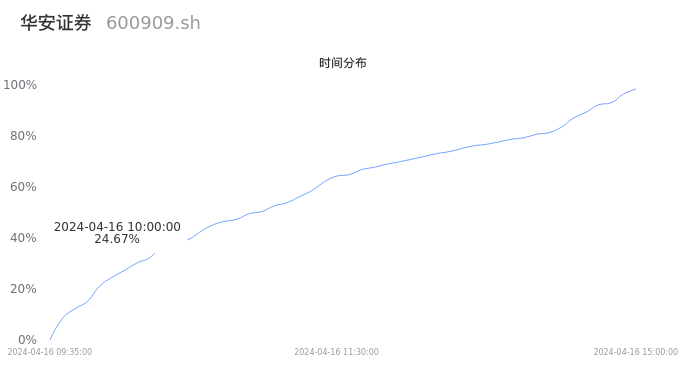 600909华安证券2024年04月16日成交36.13万手,成交金额1.65亿元,相较昨日缩量4.46万手,换手率0.77%,成交清淡。