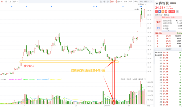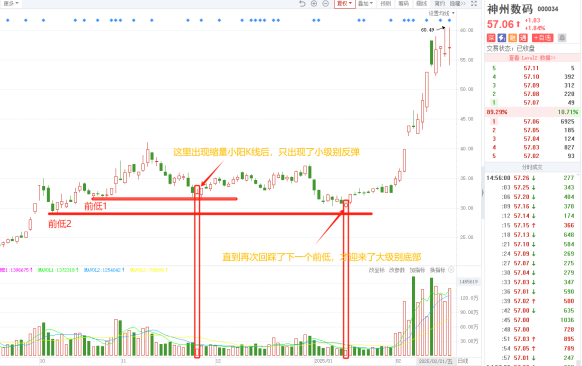 首先要明白一个股市基本原理:特殊K线往往出现在关键位才能发挥最大效能。这就涉及到关键位的知识。就常见形态而言,关键位有:前期高点、前期低点、跳空缺口、重要均线附近等。基于这几个关键位类型,我们看看缩量小阳K线的转折意义。关键位:指的是对股价走势具有重要支撑或阻力作用的位置,例如前期高点、低点、跳空缺口、重要均线等。缩量:指的是成交量相较于过去一段时间(时间长短与研究周期长短有关)明显萎缩,反映出市场交投活跃度下降。小阳线:指的是实体较短、涨幅不大的阳线,通常收盘价略高于开盘价,通常涨幅不超过2%。关键位附近的缩量小阳线,通常出现在股价经过一段时间的下跌之后,市场多空双方力量趋于平衡,观望情绪浓厚。此时,成交量萎缩表明市场参与度降低,而小阳线的出现则暗示多方力量略占上风。此时激进投资者已可以在设置关键位作为防守位的前提下试仓介入,一旦出现放量阳线确认信号,则可考虑进一步提升配置仓位。1、K线实体涨幅是否小于2%,无明显的长上影线或者长下影线;3、位置是否处于常见的关键位附近。股价不必然触及关键位,靠近关键位即可,偶有短时下探也不算异常;4、个股是否出现过数周以上的调整过程,包括下跌或者横盘震荡皆可。这家公司主营业务为IDC业务和AIDC业务。公司主要产品为数据中心业务服务。下游主要客户是字节跳动,占公司营收比例超50%,在科技方向成为主线的市场环境下,该股去年11月份有过两次回踩前低附近的动作,形成缩量小阳线后开始了一轮中期上行行情。寒武纪是科技权重中的一只趋势中军个股,它在10月初加速之后,出现缓慢上行的震荡休整过程,之后在11月下旬略作突破后,缩量小阳K线回踩高点附近,随后开始延续上涨趋势行情,走出一轮波段上涨过程。这只股票中期调整之后,1月份缩量回踩了前期跳空缺口,出现缩量小阳K线,随后开始长阳回升确立波段底部,近期依托阿里云服务概念开启波段拉升行情。股市投资讲究的是概率,关键位附近的缩量小阳线多数情况容易出现反转,但并非绝对的,投资者需结合市场环境、个股基本面等因素进行综合判断。一旦后市再度转弱跌破了缩量小阳线低点,需要采取防守策略以防破位后持续下行风险。回踩其中一个前期低点后只是小级别反弹。直到回踩另一个低点后才迎来反转。下跌过程中出现了缩量小阳K线,之后仅出现了短时的弱反抽,之后再度破位下行,跌破小阳线起点。关键位附近的缩量小阳线,作为一种常见的K线形态,可以为投资者提供一定的参考价值。关键信息有两个,一个是“关键位”附近,一个是缩量小阳K线。但投资者需注意,任何技术分析工具都存在局限性,应结合其他因素进行综合判断,并严格控制投资风险。好了,这就是今天课程的全部内容,同学们学会了没有?希望在后续的课程中,大家能够边学边用,积累更多好的经验,在股市中把握更多机会。
