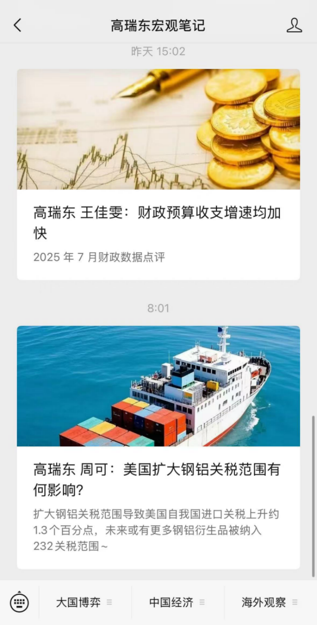 券商中国记者注意到,高瑞东个人公众号“高瑞东宏观笔记”在8月21日仍在发布研报。