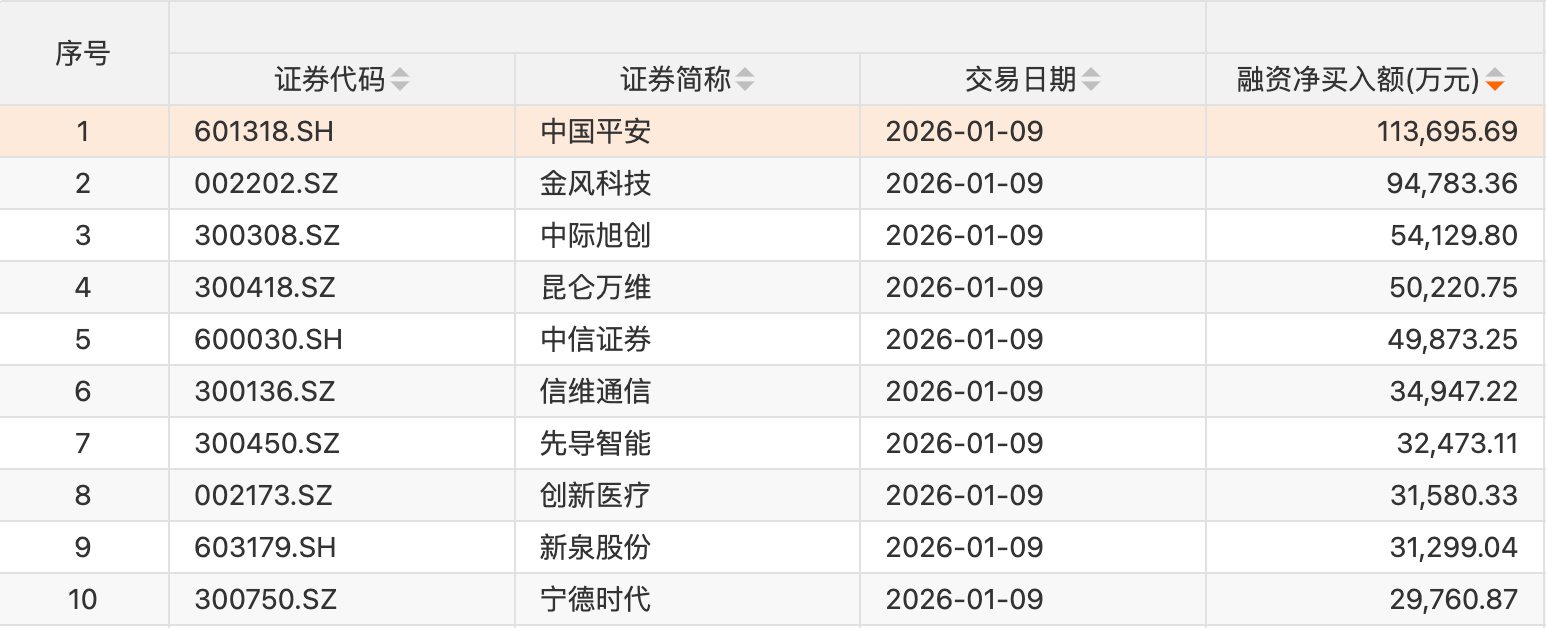 个股方面,68只个股获融资净买入额超1亿元。中国平安获融资净买入额居首,净买入11.37亿元;融资净买入额居前的还有金风科技、中际旭创、昆仑万维、中信证券、信维通信、先导智能、创新医疗、新泉股份、宁德时代等。